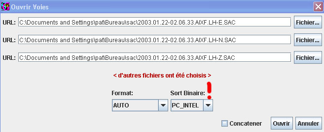 En ligne, on ouvre le fichier SAC d'un clic dans SEISGRAM.